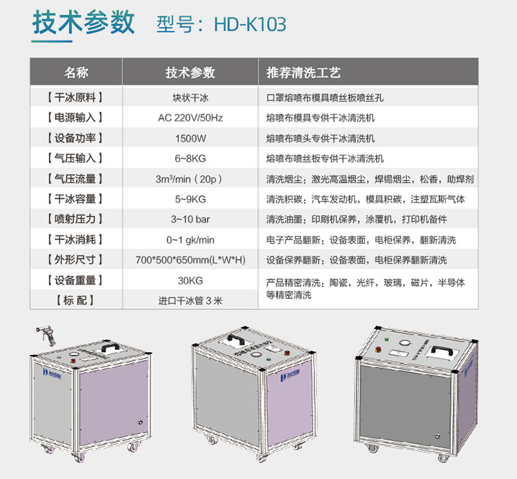 HD-K103熔噴布模具干冰清洗機(jī)適用于手機(jī),干膠加工平面,溝槽,多工面等是數(shù)控機(jī)床中發(fā)展中較快的產(chǎn)品,也是應(yīng)用較為廣泛的機(jī)床。針對(duì)模具堵塞的情況,進(jìn)行干冰高壓冷卻沖冼,加工中心適用于機(jī)械加工,模具,船舶行業(yè),汽車及零部件,航空航天等領(lǐng)域。 測(cè)試應(yīng)用: 針對(duì)模頭堵塞的情況,進(jìn)行干冰高壓沖洗。利用干冰遇到物體快速冰化的效果,急速脆化附著于模具上面的溶膠物,同時(shí)利用高壓沖洗的方式,快速清潔模頭。清洗效率十分快速,且清洗效果優(yōu)于其他的傳統(tǒng)通孔方式。 基礎(chǔ)應(yīng)用: 磨具去毛刺 去毛刺良率高,表面清潔度高,不破壞產(chǎn)品 特點(diǎn): 1. 高壓快速?zèng)_洗效率高效,沖洗效果明顯。 2.操作簡(jiǎn)單易上手:利用干冰原理去除毛刺干凈無死角,這樣就可以保證工件美觀。 3.去毛刺效果,避免了剛性主軸去毛刺不均勻。 4.可靠性高,壽命長噪音小,轟動(dòng)小,精度高的長處。 5.配備急停開關(guān)安全裝置,保證作業(yè)安全。 6.外觀采用優(yōu)質(zhì)的不銹鋼外觀,底部配備滑輪方便移動(dòng)。 |