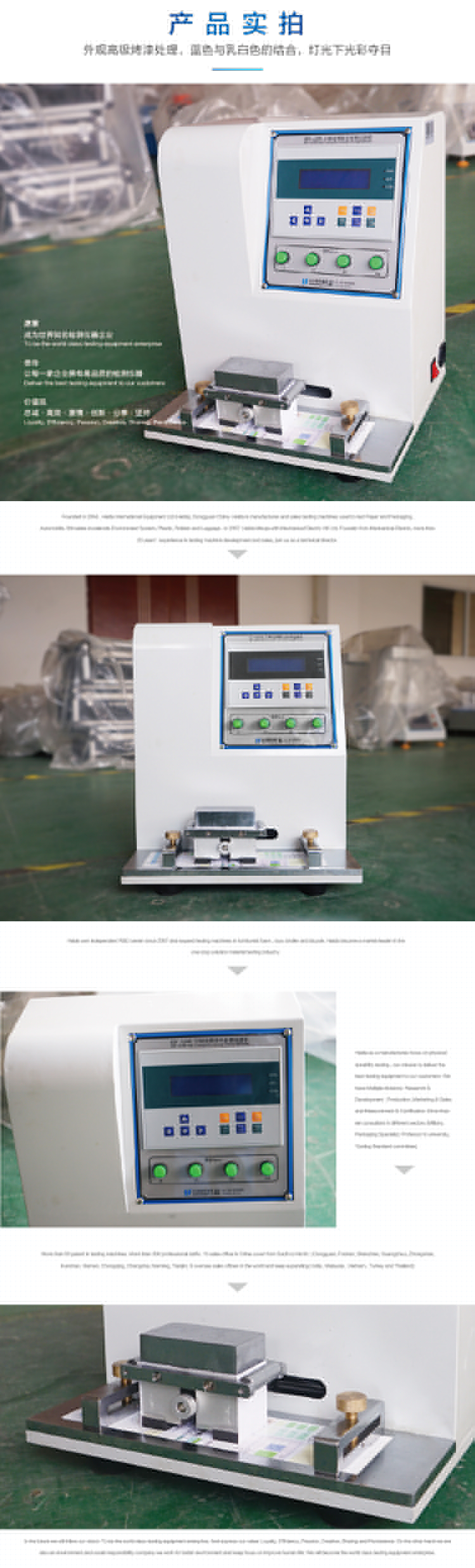 油墨脫色試驗(yàn)機(jī)(液晶屏)HD-A5088用來(lái)測(cè)試油墨粘著力,以此來(lái)判斷油墨的好壞.本機(jī)可做干磨測(cè)試,濕磨測(cè)試,脫色變化測(cè)試,紙張模糊測(cè)試及特殊磨擦測(cè)試。墨跡耐磨測(cè)試是為評(píng)估紙張或紙板上墨跡的耐磨損或耐磨擦力而設(shè)計(jì)的測(cè)試方法。用于印刷品印刷墨層耐磨性、PS版感光層耐磨性及相關(guān)產(chǎn)品表面涂層耐磨性的測(cè)試試驗(yàn)。有效分析印刷品的抗擦性差、墨層脫落、PS版的 耐印力低及其它產(chǎn)品的涂層硬度差等問(wèn)題。 油墨脫色試驗(yàn)機(jī)(液晶屏)HD-A508特點(diǎn): 1、微電腦控制、LCD動(dòng)態(tài)顯示、薄膜微動(dòng)操作面板; 2、試驗(yàn)參數(shù)按鍵輸入,并具備斷電記憶功能; 3、準(zhǔn)確執(zhí)行國(guó)家標(biāo)準(zhǔn),與國(guó)際標(biāo)準(zhǔn)兼容; 4、控制解決印刷品墨層耐磨性差、抗擦性低、易脫落等問(wèn)題; 設(shè)計(jì)標(biāo)準(zhǔn):JIS-5071-1,TAPPI-UM486,GB7706 |