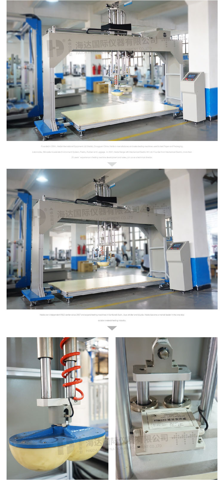 用特定的加載塊反復(fù)對床墊進(jìn)行沖擊,評估其耐用性,和彈簧的堅(jiān)牢保持度。 設(shè)計(jì)標(biāo)準(zhǔn):ASTM F 1566-2009 | ||