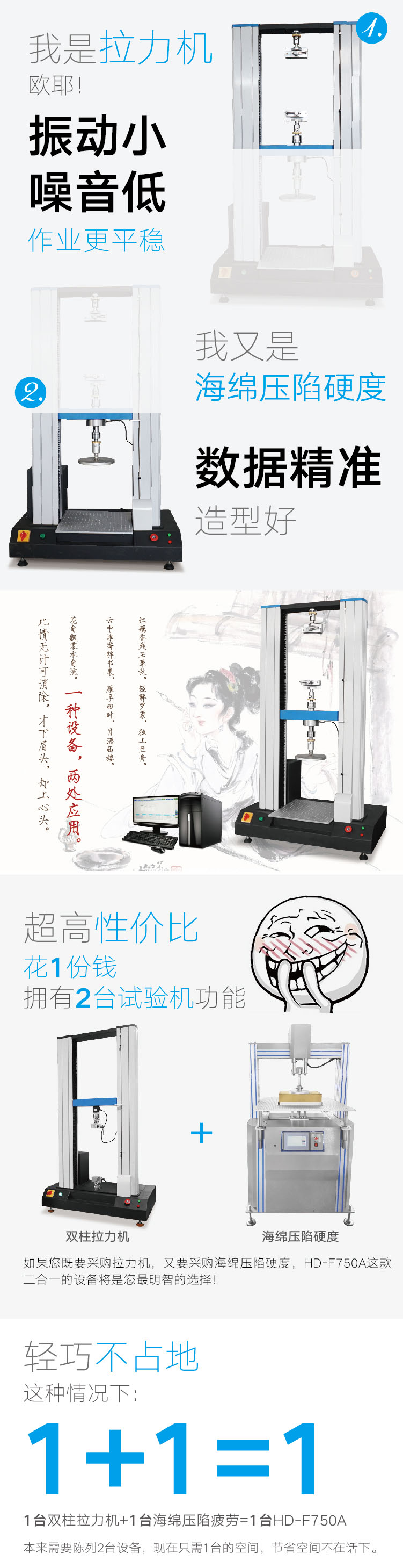 海綿壓陷硬度與拉壓(二合一)試驗機HD-F750A