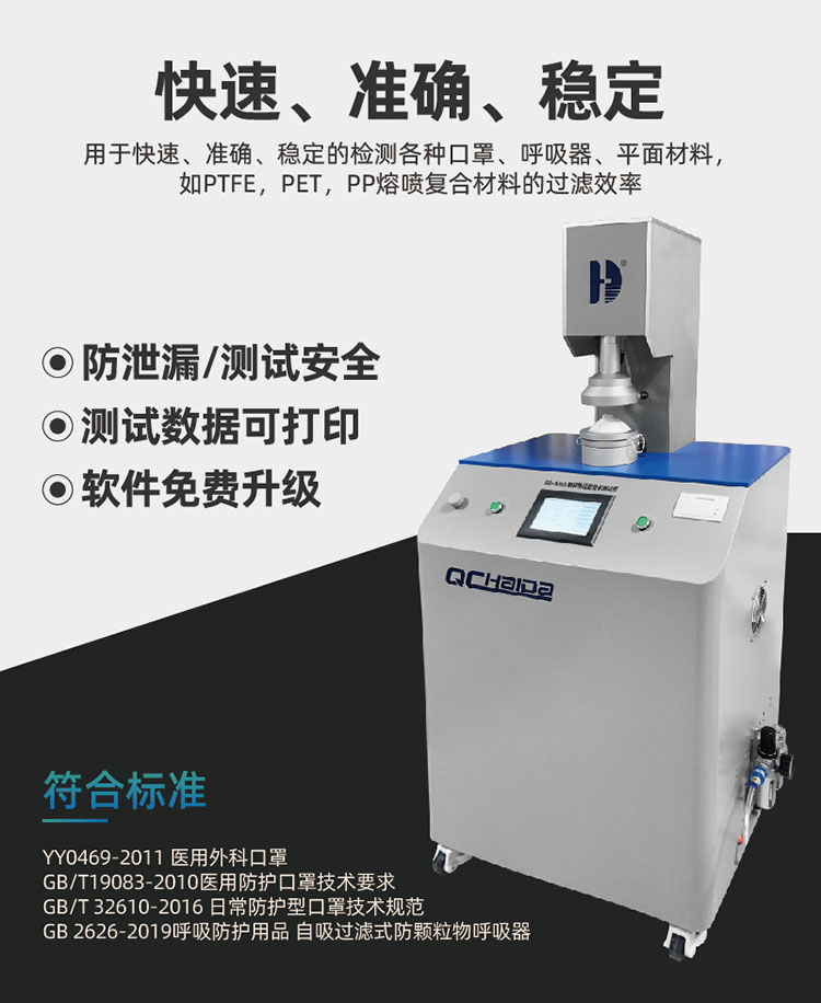 熔噴布顆粒物過濾效率測試臺(含通氣阻力測試)是用于檢測衛(wèi)生防護(hù)用口罩熔噴布的過濾性能,防護(hù)過濾效率,過濾效果的檢測裝置。熔噴布具有孔徑小、孔隙率高、過濾效率高等特點(diǎn),作為口罩生產(chǎn)的核心材料對規(guī)范熔噴布企業(yè)生產(chǎn)經(jīng)營行為、保證口罩核心原材料質(zhì)量發(fā)揮積極作用。 現(xiàn)有少量現(xiàn)貨,價(jià)格實(shí)惠,預(yù)購從速,先到先得! 詳詢13390877155 設(shè)計(jì)標(biāo)準(zhǔn): ①、T/JSFZXH001-2020《口罩用聚丙烯熔噴非織造布》 ②、GB2626-2019呼吸防護(hù)用品自吸過濾式防顆粒物呼吸器 ?、邸B/T32610-2016日常防護(hù)型口罩技術(shù)規(guī)范 ④、GB/T19083-2010醫(yī)用防護(hù)口罩技術(shù)要求 ?、荨Y0469-2011醫(yī)用外科口罩產(chǎn)品特點(diǎn) ?、佟⑷填w粒物防泄漏設(shè)計(jì),保護(hù)實(shí)驗(yàn)人員安全; ②、檢測艙配置操作手套,方便待檢口罩的更換; ?、邸⒓嫒菘谡趾秃粑黝愒嚇訙y試顆粒物防護(hù)效果和過濾效率。 |