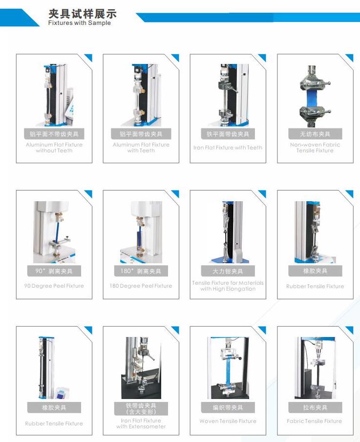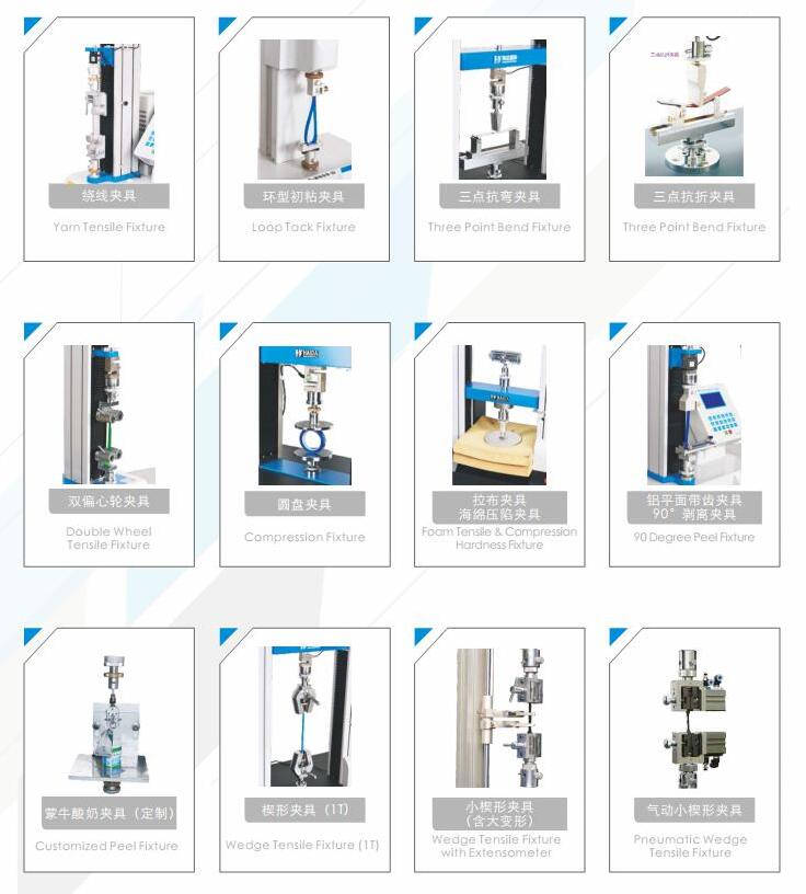 拉力試驗機之所以叫做”多功能拉力試驗機”,主要在于配置的不同夾具,讓拉力試驗機有著廣泛的用途,如橡膠、塑料、薄膜、織物、金屬、線材等多行業(yè)。進行拉伸、延伸、壓縮、剪切、撕裂、剝離等力學(xué)性能測試。能自動檢測出材料的力值、屈服力值、斷裂力值及變形量、屈服伸長量。