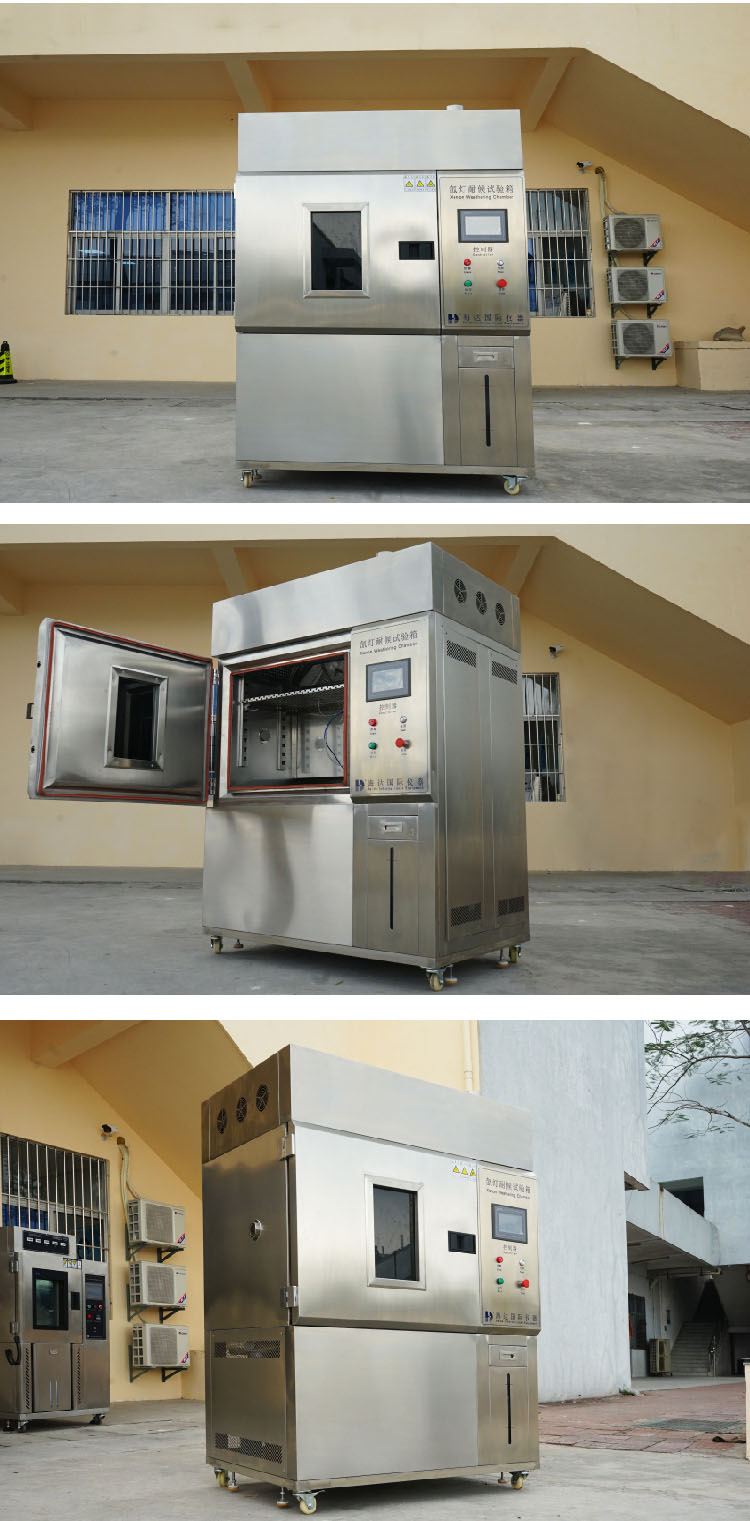 氙燈耐候試驗(yàn)箱采用氙弧燈,可模擬全太陽(yáng)光譜且存在于不同環(huán)境下的破壞性光波。此設(shè)備能提供相應(yīng)的環(huán)境模擬和加速試驗(yàn),專門用于科研,產(chǎn)品開(kāi)發(fā)和產(chǎn)品質(zhì)量管控等等。是通過(guò)材料試樣暴露在氙弧燈的光照及熱輻射下進(jìn)行老化試驗(yàn).來(lái)評(píng)價(jià)在高溫光源作用下某些材料的耐光、耐候性能.主要用于汽車、涂料、橡膠、塑料、顏料、粘合劑、織物等。 設(shè)計(jì)標(biāo)準(zhǔn):GB/T1865-97(2007)、GB/T9344-88、GB/T16422.2-99、GB/T2423.24-1995、ASTMG155、ISO10SB02/B04、SAEJ2527、SAEJ2412)等 | ||