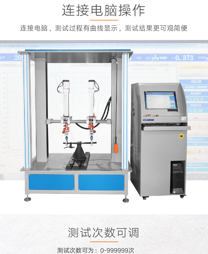 滑板車車把動態(tài)疲勞試驗機HD-J247A-S模擬自行車在實際騎行過程中,在不同的路況下,車把組件會受到人手給予的不同方向的力,尤其是在較顛簸路面上騎行時,受到的力就比較大和頻繁,因此車把組件的質(zhì)量好壞關系到整個車子的使用安全性和使用方便快捷性。本試驗機是根據(jù)EN14764、EN14766和EN14781相關疲勞試驗相關標準設計,整個試驗系統(tǒng)通過計算機自動控制,力量的施加系統(tǒng)采用力閉環(huán)控制,當施加在車把上的試驗力達到設定的力量時自動返回換向。 設計標準:滿足ISO 4210-5-2014 (ISO標準) 4.9 一和二階段加載方式 試驗方法:試驗時將車把組件按照標準規(guī)定的方法固定在試驗機上,加載橫梁的高低位置可以通過手動調(diào)節(jié)來適應車把立管的大小;將車把立管(或假示把立管)固定在專用夾具上,調(diào)整加載氣缸的上下、左右位置,使加載夾具可以剛好裝配在把橫管上,固定好各個部分。在計算機上設定好試驗要求的試驗力值、次數(shù)。調(diào)整好允許車把的Z大變形量,超過此變形量后機臺會自動停止測試;啟動試驗程序開始測試,試驗達到設定次數(shù)或試件損壞,機臺自動停止測試并保留試驗結(jié)果。 |